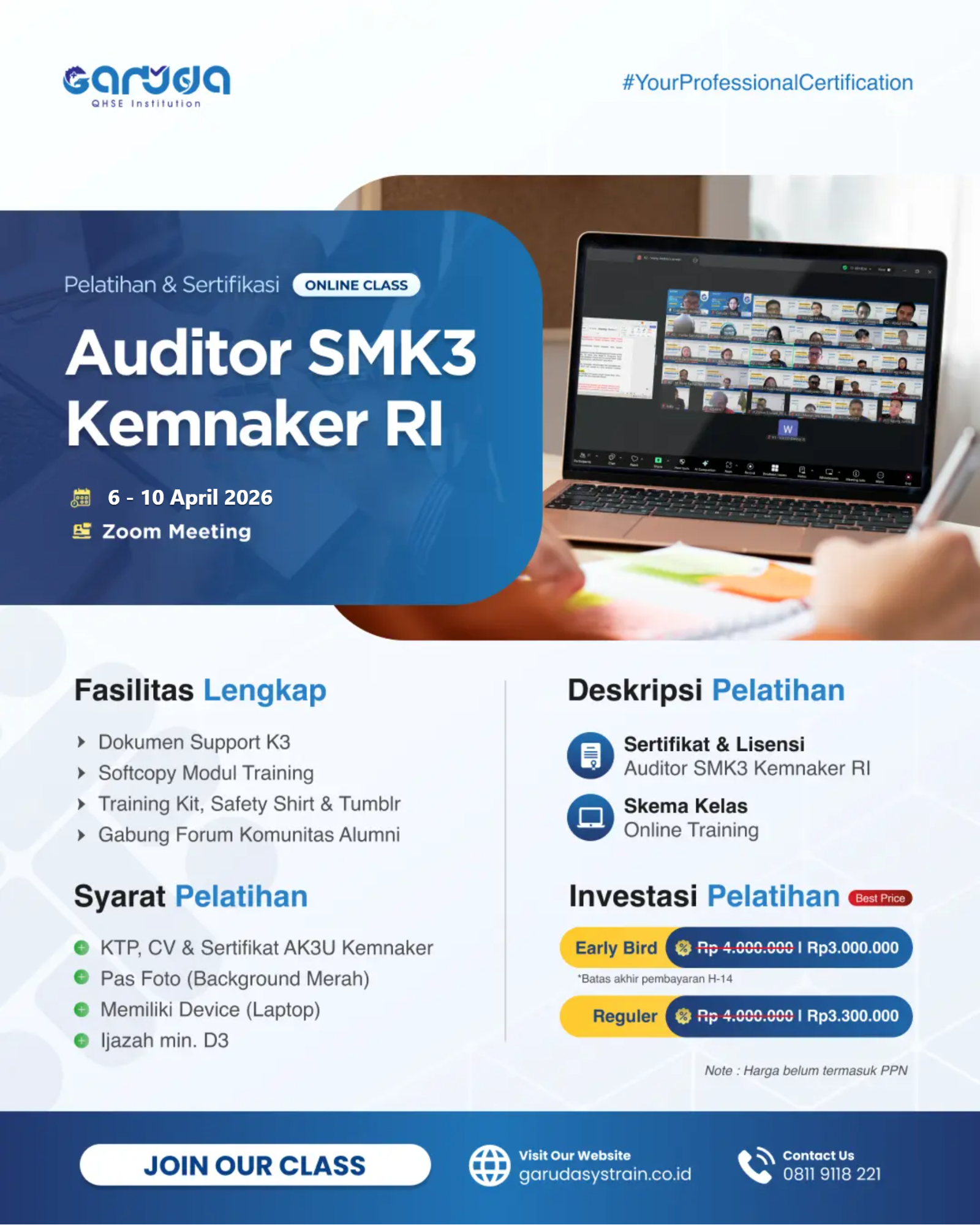 Garansi 100% lisensi resmi dari KEMNAKER RI dan BNSP untuk 3,000+ Pelatihan
