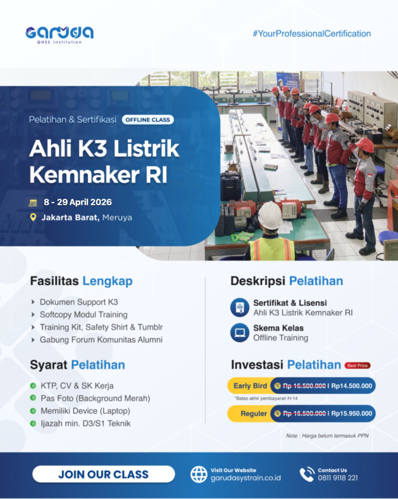 PT Garuda Systrain Interindo sebagai penyedia jasa Training and Certification memberikan pelatihan Ahli K3 Listrik sehingga membantu peserta dalam memenuhi standar kompetensi yang ditetapkan pemerintah.