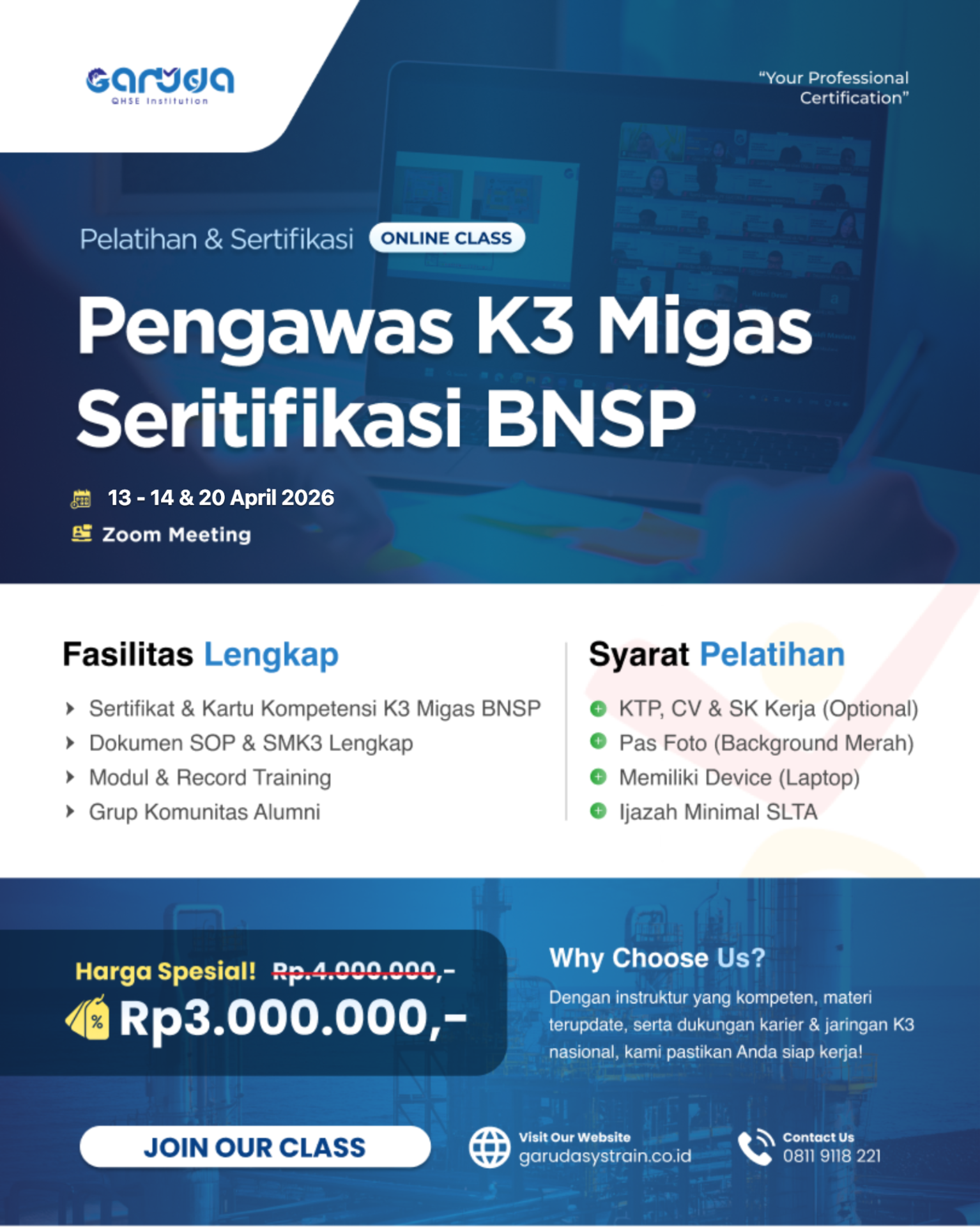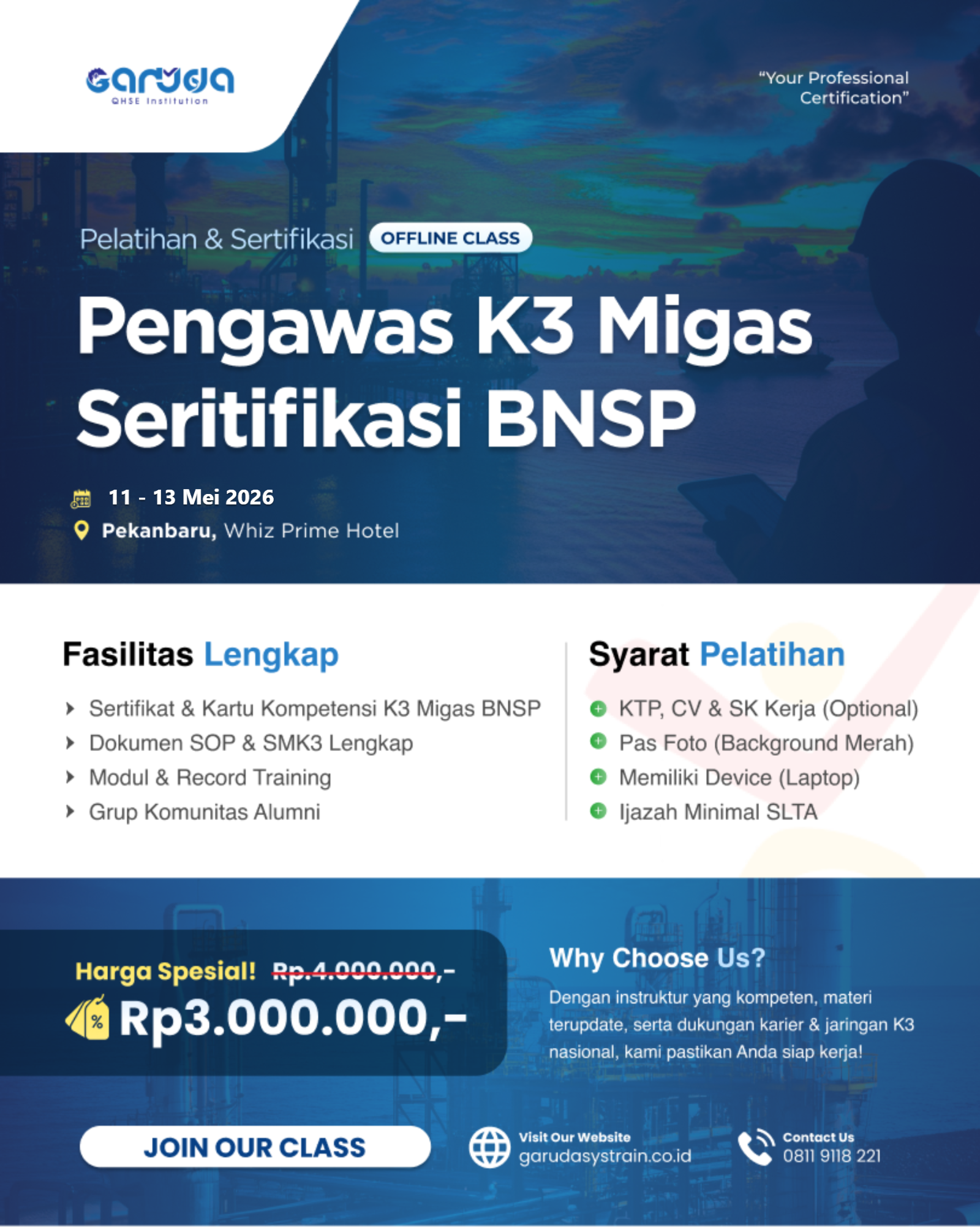 PELATIHAN AHLI K3 MIGAS LEVEL PENGAWAS SERTIFIKASI BNSP