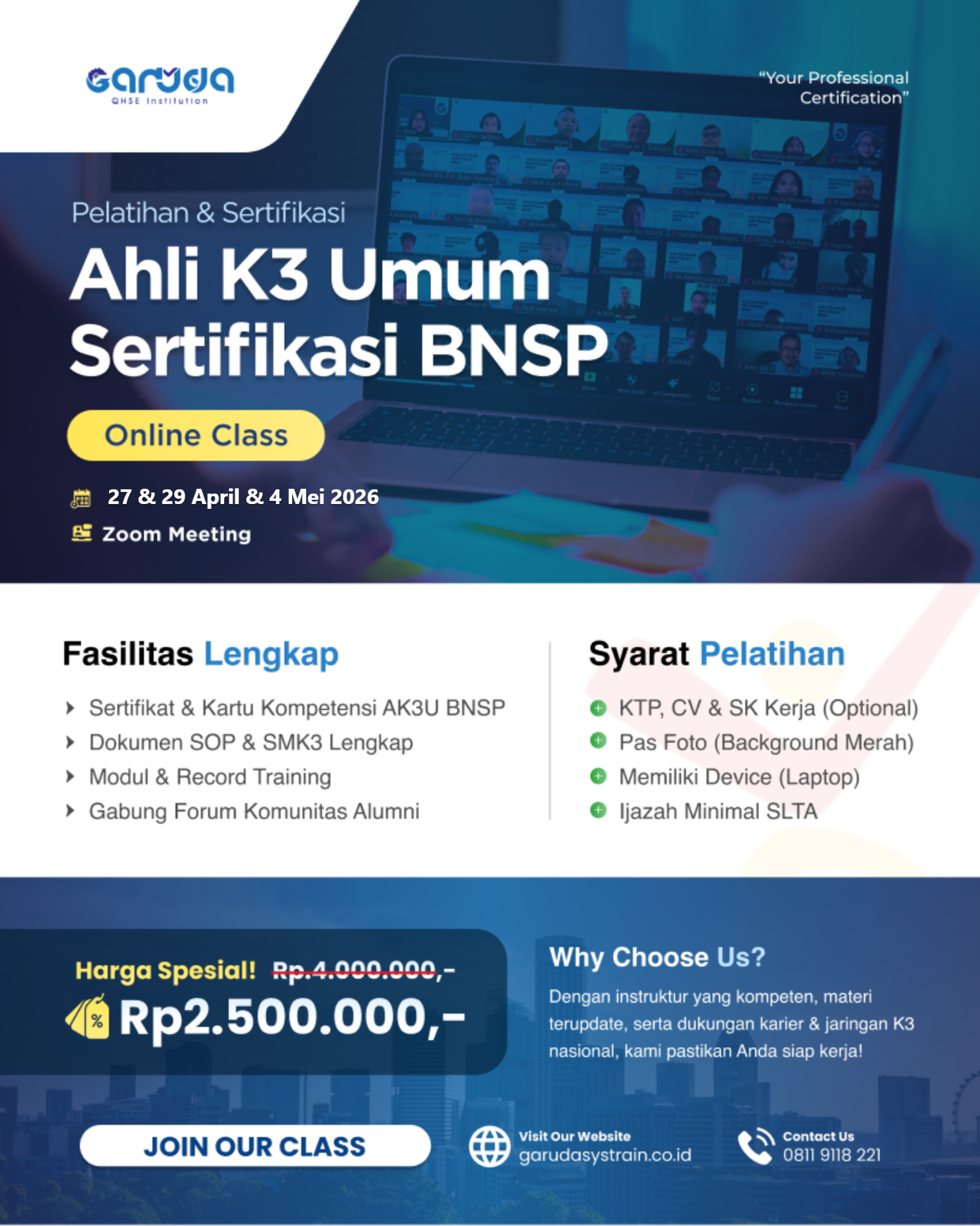 • Diskon Alumni 5-10% untuk seluruh pelatihan di Garuda QHSE Institution