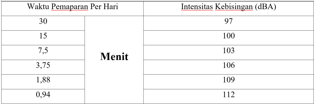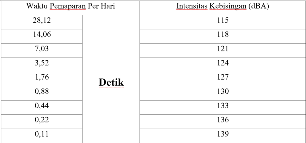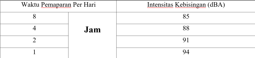 Berikut ini adalah nilai ambang batas kebisingan menurut permenaker no 5 tahun 2018: