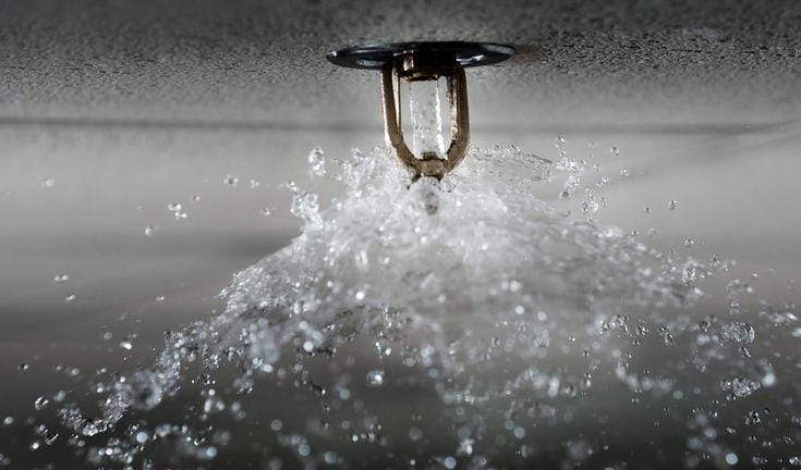 Sprinkler adalah jenis sistem otomatis penyiraman air melalui kepala yang dipasang pada sistem perpipaan. Kepalanya terhubung ke suplai air, dan air raksa yang pecah menjadi sensor sensitif yang terhubung ke suhu panas yang dihasilkan oleh kebakaran. Setelah suhu tertentu dicapai, setiap sprinkler diaktifkan secara terpisah. Sebagian besar penyiram air memiliki debit antara 20 dan 25 galon per menit (gpm), tergantung pada desain sistem. Sprinkler yang dimaksudkan untuk penggunaan khusus dibuat dengan debit hingga 100 gpm.