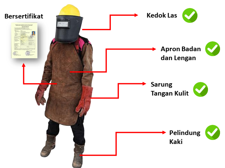 Berikut merupakan contoh penggunaan APD pada Pekerja Las (Welder):