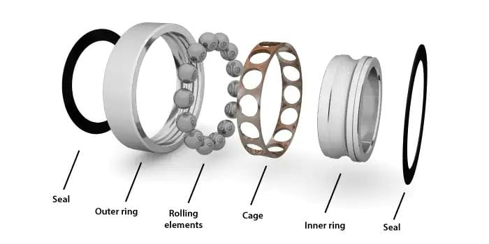 Ada beberapa komponen yang ada pada bearing, berikut adalah penjelasannya: