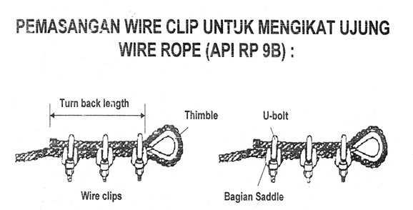 a. Penggunaan wire clip yang benar akan menghasilkan sambungan dengan kekuatatan 80% kekuatan tarik dari wire rope