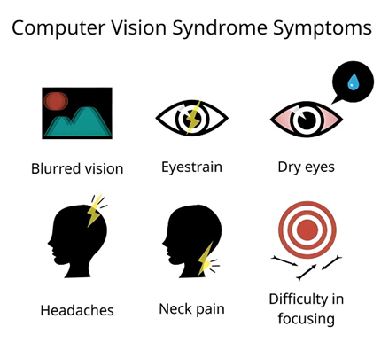 Gejala-gejala yang timbul ketika terkena Computer Vision Syndrome (CVS) meliputi: