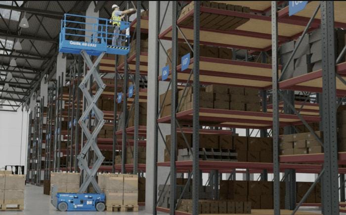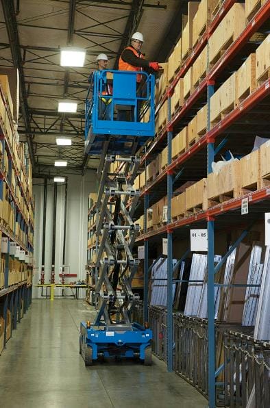 Aktivitas yang diunggulkan oleh scissor lift, seperti menjangkau ketinggian yang sangat tinggi dan membawa kargo besar yang tidak dapat diangkat dengan tangan, biasa terjadi di pusat pengiriman.