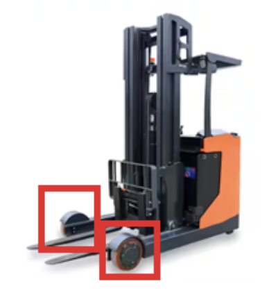 Reach truck umumnya dilengkapi dengan roda untuk memudahkan pergerakan. Ada reach truck dengan tiga roda (trike) atau empat roda, dan konfigurasi ini dapat memengaruhi kemampuan manuver dan stabilitas forklift.