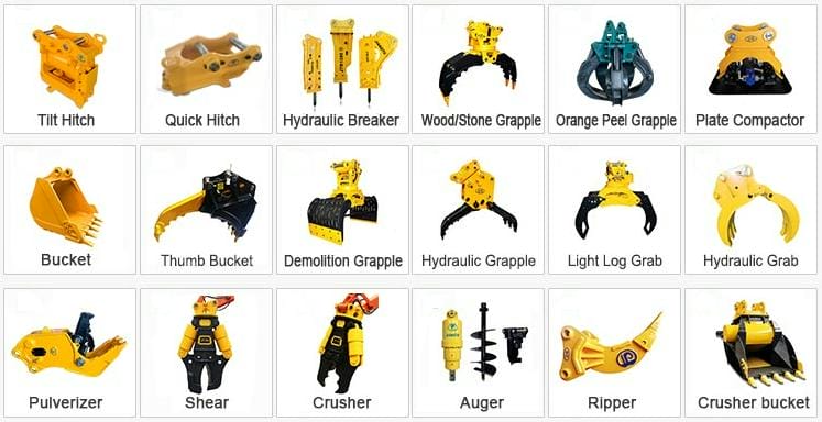 Operator dapat menukar attachment excavator sesuai dengan jenis pekerjaan yang dilakukan. Alat tambahan untuk excavator berkisar dari alat sederhana seperti bucket material biasa hingga alat khusus untuk pekerjaan berpasir seperti pemotongan, pembongkaran, atau penghancuran. Attachment untuk excavator juga tersedia dalam berbagai ukuran, konfigurasi, dan peringkat daya, sehingga pemilik peralatan dapat mencocokkan alat kerja mereka dengan excavator mereka untuk memaksimalkan kinerja.