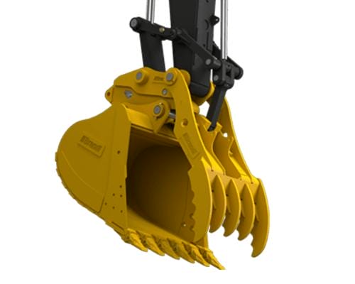 Grapple Attachment digunakan untuk menggenggam dan menyortir material seperti kayu, batu, atau limbah.
