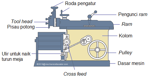 Mesin sekrap (Shaping) adalah mesin perkakas yang digunakan untuk mengubah permukaan benda kerja menjadi permukaan rata baik bertingkat ,menyudut dan alur. Gerak utama bolak-balik horizontal dan berfungsi untuk merubah bentuk dan ukuran benda kerja sesuai dengan yang dikehendaki. Pahat bekerja pada saat gerakan maju, dengan gerakan ini dihasilkan pekerjaan meratakan bidang, membuat alur, membuat bidang bersudut atau bertingkat dan membentuk bidang-bidang yang tidak beraturan.Prinsip kerja mesin sekrap adalah gerakan berputar dari motor diubah menjadi gerak lurus/gerak bolak-balik melalui blok geser dan lengan penggerak. Possisi langkah dapat diatur dengan spindle posisi dan untuk mengatur panjang langkah dengan bantuan blok geser.