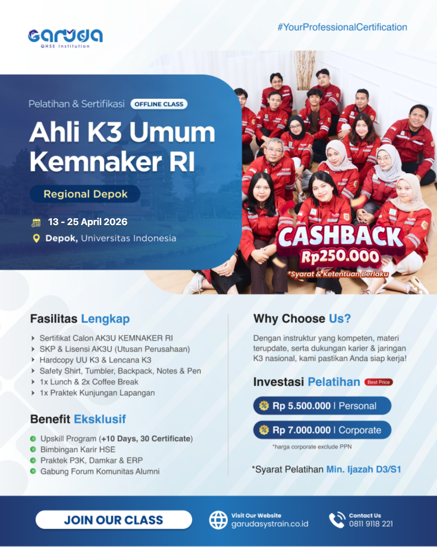 lkuti Pelatihan Ahli K3 Umum dibimbing langsung oleh ahlinya dan siap jadi Ahli K3 yang resmi diakui oleh Kemnaker RI
