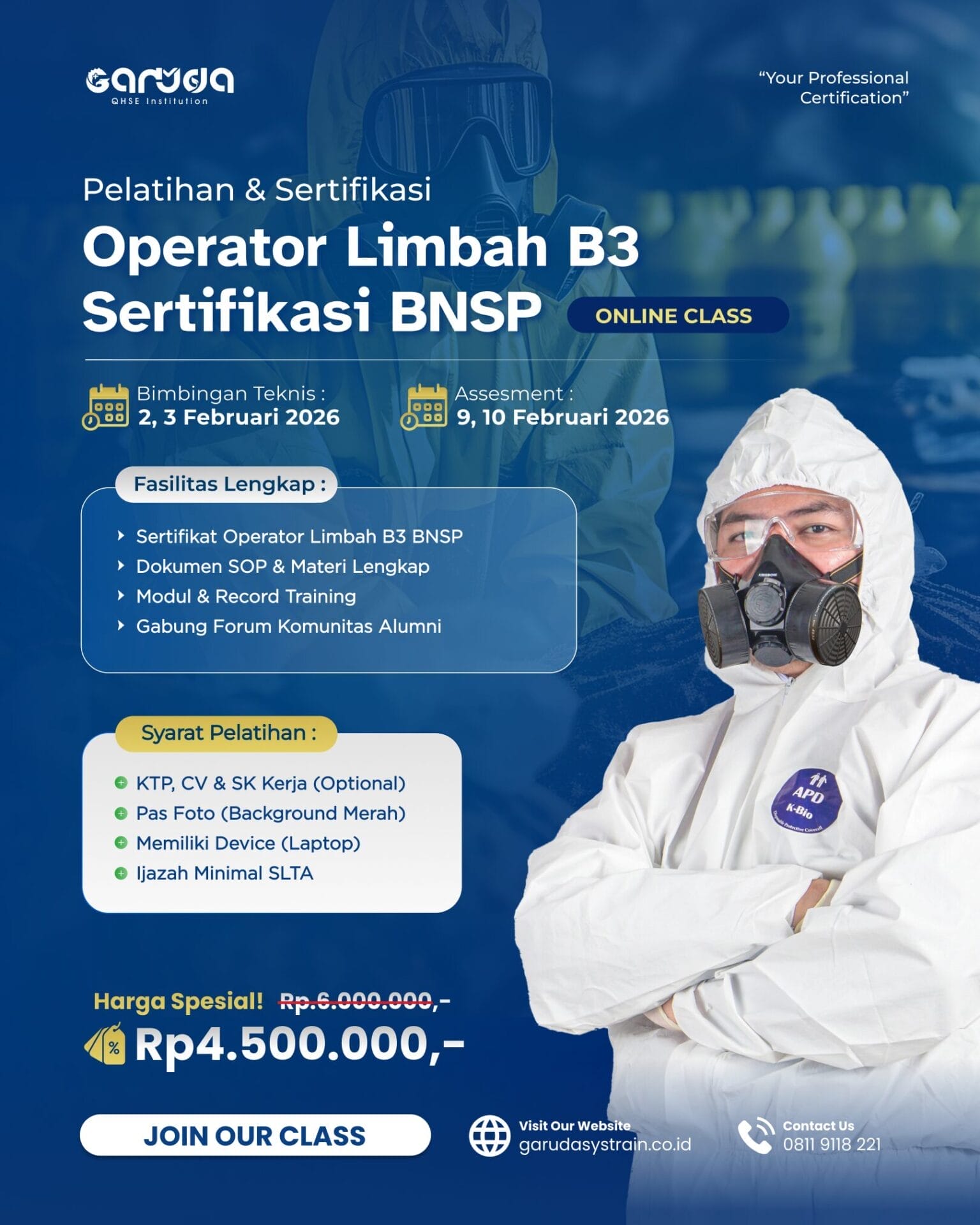 | Online | Operator Limbah B3 | 2, 3 & 9, 10 Februari 2026 |