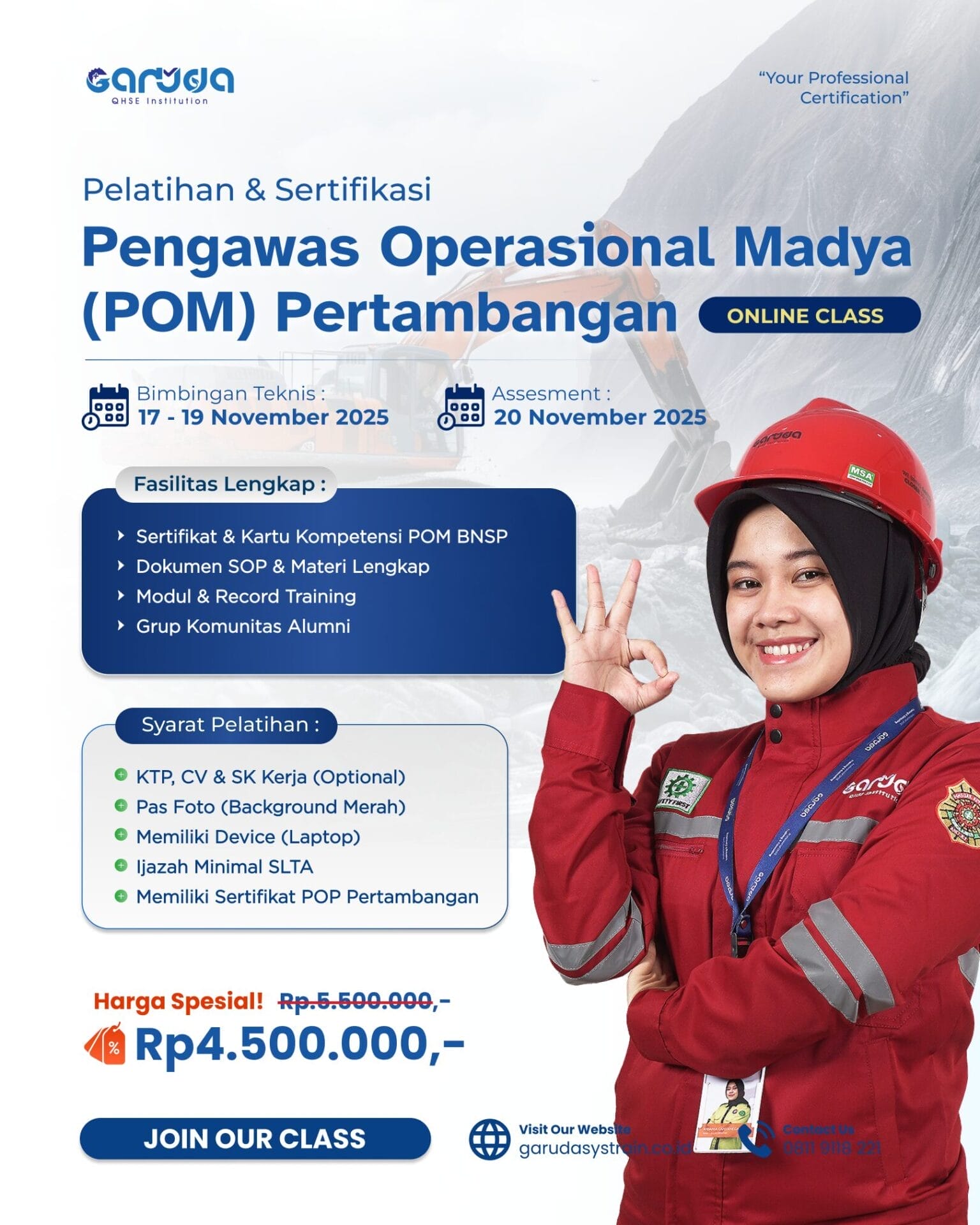 Biaya Investasi Pelatihan Pengawas Operasional Madya (POM) BNSP