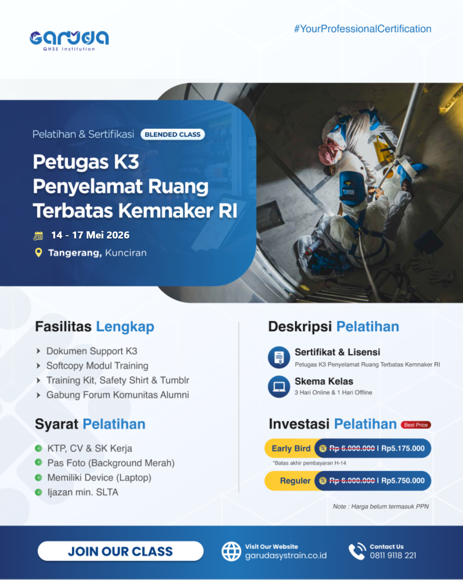 Biaya Investasi Pelatihan Petugas K3 Ruang Terbatas KEMNAKER RI