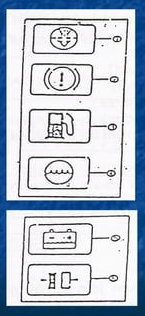 | Lampu peringatan tambahan | ![]() | 1. Lampu elemen pembersih udara, jika lampu ini menyala bersihkan elemennya atau ganti jika perlu 2. Lampu minyak rem, Jika menyala cepat tambahkan minyak rem 3. Lampu bahan bakar, jika lampu ini menyala segeralah tambahkan bahan bakar 4. Lampu air radiator, jika lampu ini menyala tambahkan air untuk radiator 5. Lampu elektrolit, jika lampu ini menyala tambahkan elektrolit aki 6. Lampu kopling, jika lampu ini menyala berarti kampas kopling sudah aus dan perlu penggantian |