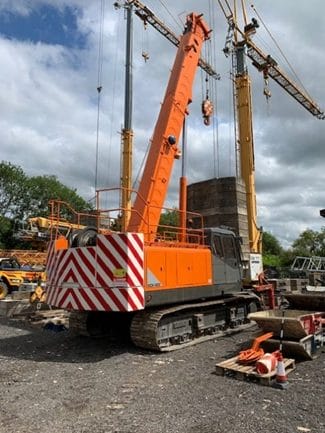 Crawler crane membantu menempatkan material besar seperti beton prategang atau tiang listrik saat membangun proyek infrastruktur seperti jalan tol atau rel kereta api.