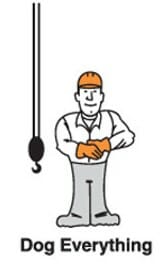 | Dog Everything | Salah satu tangan memegang tangan yang lain di depan setinggi pinggang. Isyarat ini berarti peralatan dalam kondisi standby atau berhenti operasi. | ![]() |
