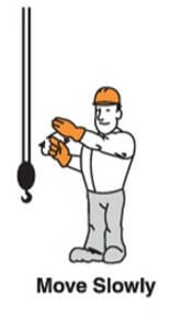 | Move Slowly | Telunjuk menunjuk ke atas putar searah jarum jam di bawah telapak tangan yang lain. Isyarat tangan ini memiliki arti menaikkan atau menurunkan beban secara perlahan-lahan. | ![]() |