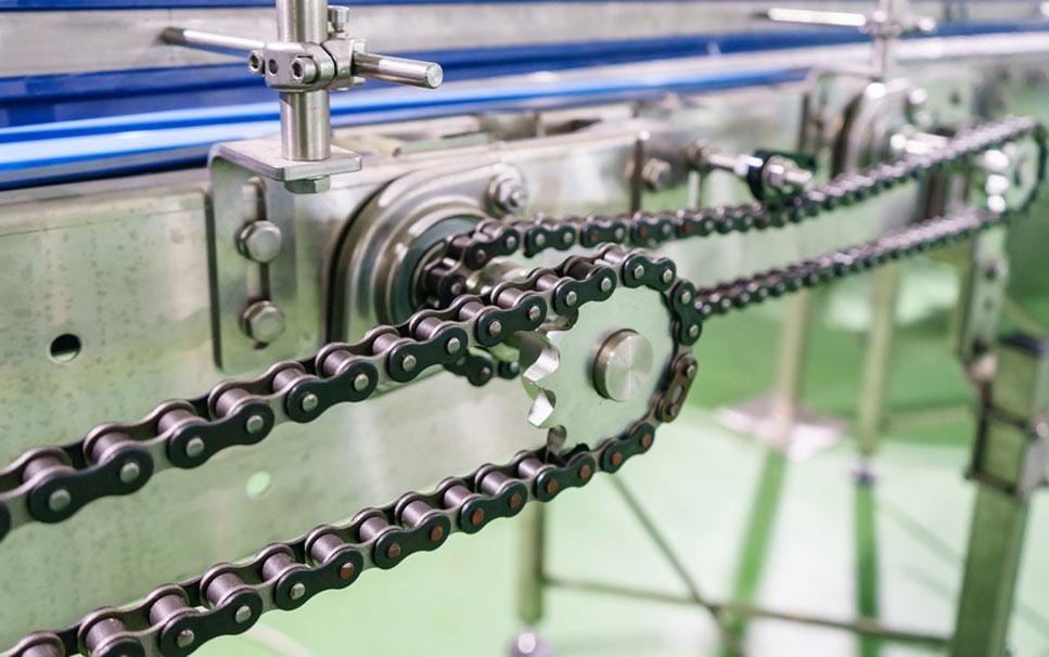 Transmisi rantai Transmisi rantai adalah transmisi yang digunakan untuk menghubungkan gerakan atau men transfer putaran dari motor penggerak ke sproket pada mesin produksi. Jika untuk kendaraan rantai ini biasa digunakan sebagai timing chain pada mesin dan juga penghubung gerakan dari mesin ke roda.