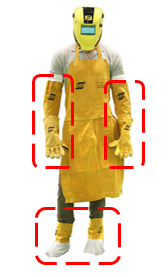 Pakaian kerja las adalah pakaian yang melindungi seluruh bagian tubuh dari panas dan percikan las. Selain itu terdapat Apron sebagai tambahan, yaitu apron dada dan apron lengan yang terbuat dari bahan kulit. Terbuat dari bahan kulit, untuk menghindari apron yang berlubang dari tingginya temperatur percikan las.