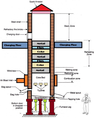 Blast Furnance adalah merupakan salah satu proses metalurgi untuk mereduksi bijih besi (irone ore), pellet dan sinter secara kimia dan mengubah material besi tersebut menjadi logam cair bersuhu tinggi (hot metal) dengan sarana tanur/tungku pelebur. Blast furnance juga disebut sebagai metode tanur tegak atau tinggi, karena prosesnya menggunakan tanur berbentuk silinder tegak dengan ukuran yang relatef besar. Diameter tanur ini berikuran +- 6 meter dengan tinggi 20 – 30 meter. Tungku dengan lubang di bagian atas ini terbuat dari plat baja yang dinding bagian dalamnya dilapisi dengan batu tahan api (refactory brick).