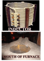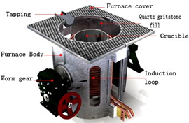 Tungku induksi memiliki kumparan tembaga yang dilindungi oleh pelindung baja dan magnetis serta tetap dingin dengan sirkulasi air dari pendingin khusus. Lapisan bahan tahan api atau bahan yang sulit meleleh, ditempatkan di atas kumparan dan dipanaskan hingga suhu yang diinginkan. Untuk wadah peleburan yang terbuat dari bahan tahan panas berada di atas bahan tahan api. Logam yang akan dilebur ditempatkan di dalam wadah dan panas yang dihasilkan oleh muatan elektromagnetik melelehkan potongan tersebut.