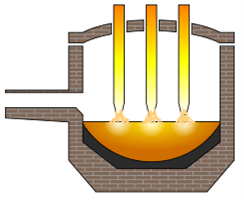 Tanur listrik yang menggunakan busur listrik sebagai pemanasnya. Busur listrik diperoleh langsung dari reaksi electrode dengan elektrod atau dengan cairan besi. Elektrode menghasilkan busur listrik dengan suhu peleburan sekitar 3.000 C. Elektrode yang digunakan terbuat dari karbon murni dan diambil dari pipa-pipa pembangkit gas karbon monoksida pada tekanan 250–300 atmosfer. Pada penggunaan tanur busur listrik tidak terjadi percampuran karbon ke dalam cairan baja sehingga menghasilkan baja dengan kualitas tinggi.